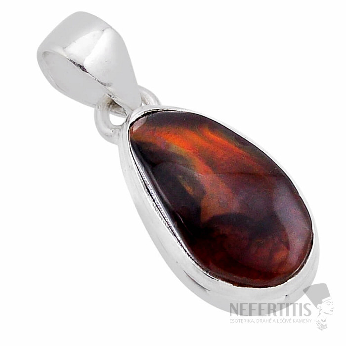 Wunderschöner Silberanhänger mit einem sehr dekorativen und einzigartigen mexikanischen Feuerachat. Es ist ein Stein mit einem dunkelrotbraunen Hintergrund, in dem orange, rote, grüne und goldene Blitze erscheinen können, die wie lebendige Flammen wirken. Feuerachat wird seit der Antike als Talisman gegen alle Arten von Gefahren verwendet, einschließlich starker Winde und Blitze sowie gegen die Wut des Ozeans. Ag 925. Sie kaufen das abgebildete Schmuckstück.