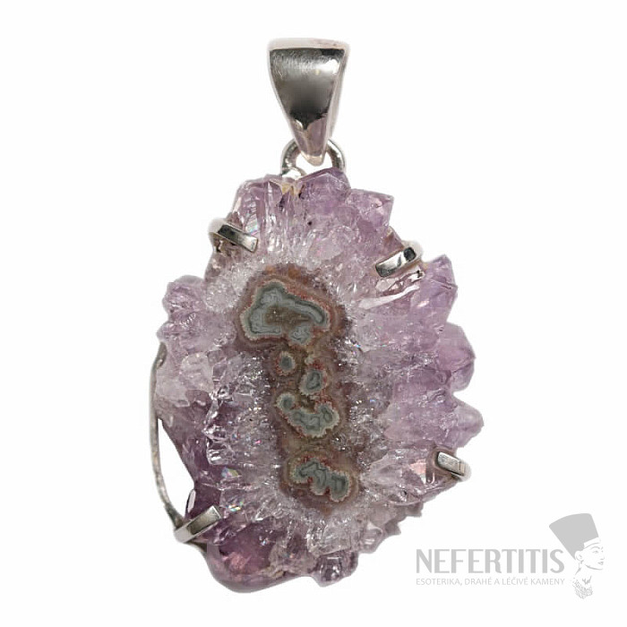 Exklusiver, bezaubernder Silberanhänger aus dem polierten Kern eines seltenen Amethyst-Stalaktiten – ein Stalaktit, der sich über Millionen von Jahren tief in einer Höhle gebildet hat und dessen Entstehung durch den ersten Tropfen Mineralwasser ausgelöst wurde. Silber 925. Die beidseitig polierten Scheiben des Amethyst-Stalaktiten symbolisieren inneres Wachstum, Neuanfänge und die Stärkung des höheren Selbst. Ihr ungewöhnliches Aussehen, das an die Blütenblätter zarter violetter Astern erinnert, macht dieses Schmuckstück besonders schön. Sie erwerben genau das abgebildete Schmuckstück.