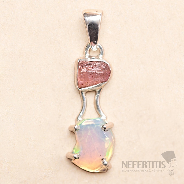 Anhänger aus äthiopischem Opal und rosa Turmalin, Silber Ag 925, LOT4