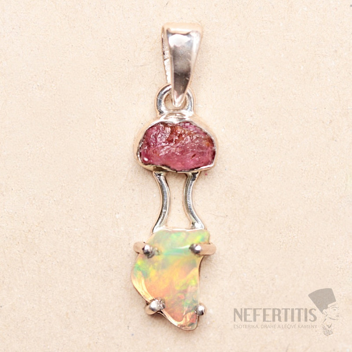 Anhänger aus äthiopischem Opal und rosa Turmalin, Silber Ag 925, LOT6