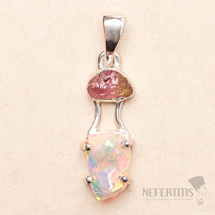 Anhänger aus äthiopischem Opal und rosa Turmalin, Silber Ag 925, LOT8