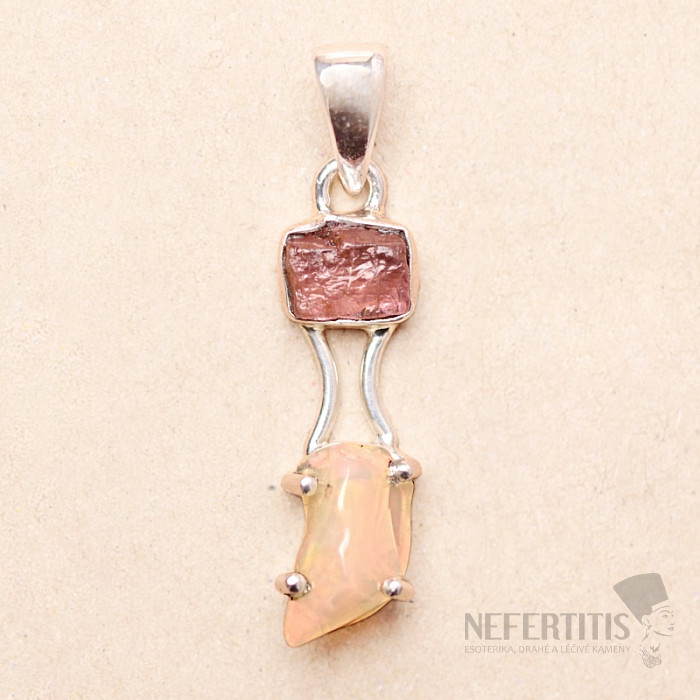 Anhänger aus äthiopischem Opal und rosa Turmalin, Silber Ag 925, LOT9