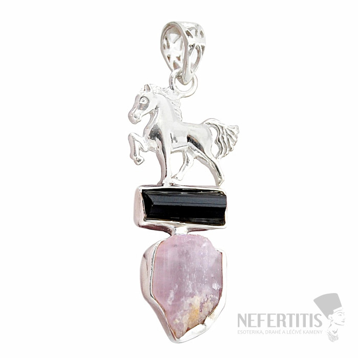 Anhänger aus Turmalin-Scoryl und rosa Kunzit, Silber Ag 925 48215
