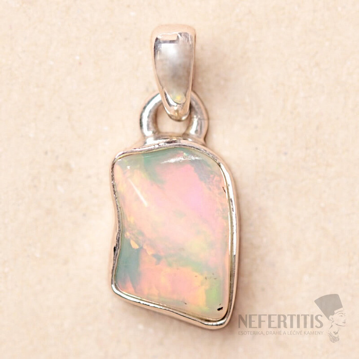 Eleganter Silberanhänger aus rohem, poliertem Opal, mit wunderschönem Farbenspiel. Ag 925. Eindrucksvoller und eleganter Schmuck, der durch seinen Anblick Freude und Gefühle der Harmonie hervorruft. Äthiopische Opale schwelgen im Vergleich zu australischen Opalen förmlich in neonhellen Farbreflexen. Auch wenn man es auf den ersten Blick nicht vermuten mag, das Farbfeuerwerk, das bei jedem Lichteinfall aus dem Opal dieses Anhängers hervorbricht, wird nicht nur Sie, sondern Ihre gesamte Umgebung verzaubern. Sie kaufen den abgebildeten Schmuck.