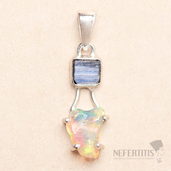 Äthiopischer Opal und blauer Kyanit-Anhänger, Silber Ag 925 LOT3