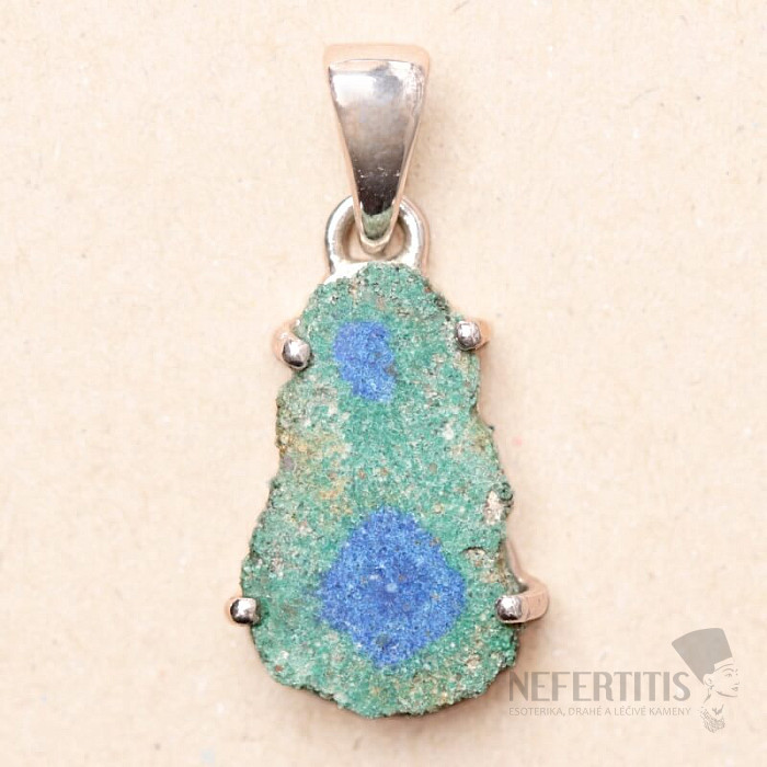 Azurit in Malachit Stalaktit geschliffener Anhänger Silber Ag 925 P11