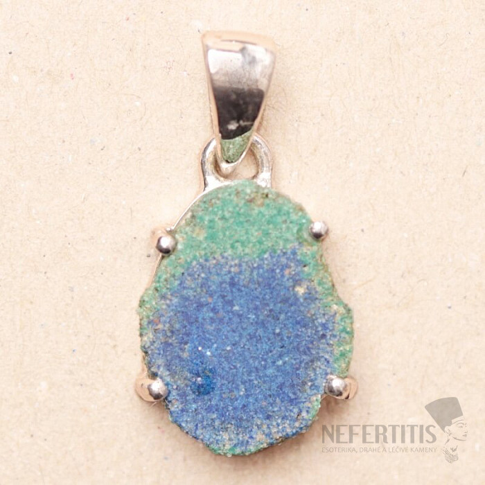 Azurit in Malachit Stalaktit geschliffener Anhänger Silber Ag 925 P14