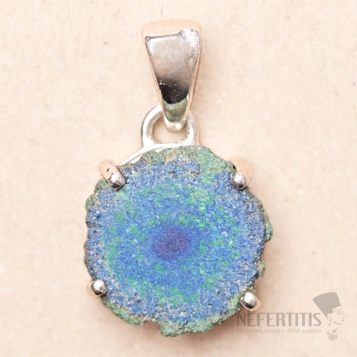 Azurit in Malachit Stalaktit geschliffener Anhänger Silber Ag 925 P20
