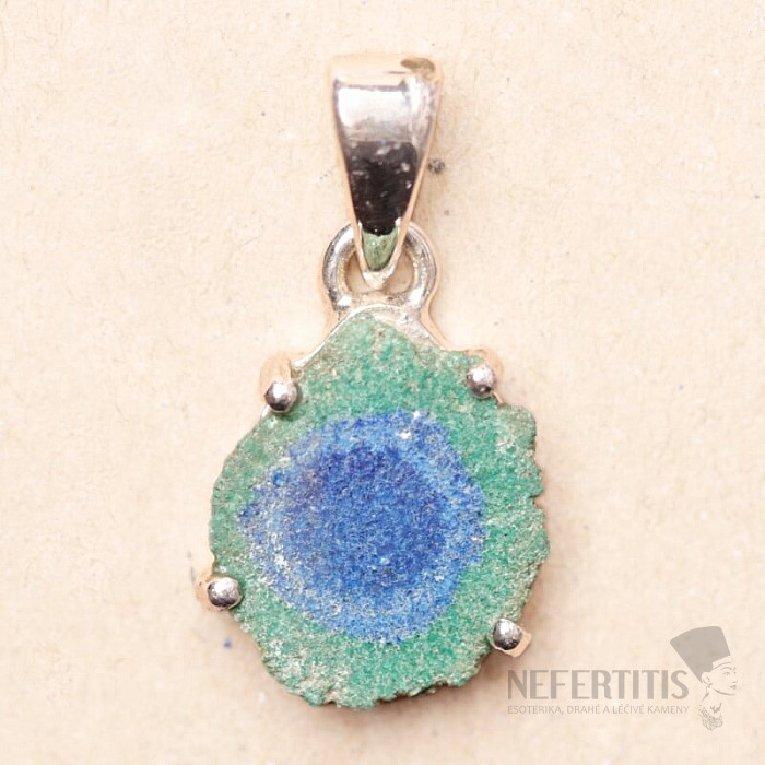 Azurit in Malachit Stalaktit geschliffener Anhänger Silber Ag 925 P21