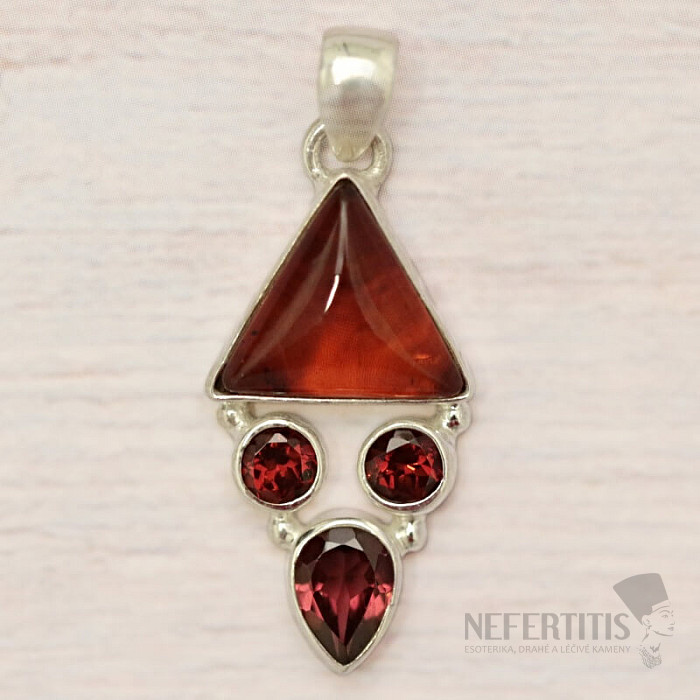 Silberanhänger mit wunderschönem honigfarbenem baltischen Bernstein und geschliffenen Granaten. Ag 925. Ein unverwechselbarer und wahrer Blickfang. Sie erwerben genau das abgebildete Schmuckstück.