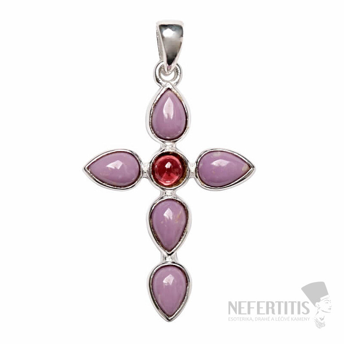 Wunderschöner silberner Designeranhänger in Form eines Kreuzes mit Phosphosiderit und Granat . Ag 925. Sie erwerben direkt den abgebildeten Schmuck.
