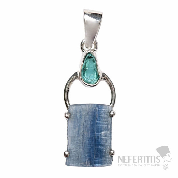 Wunderschöner silberner Designeranhänger mit blauem Rohdiamant Kyanit und Neonapatit . Ag 925. Sie erwerben direkt den abgebildeten Schmuck.