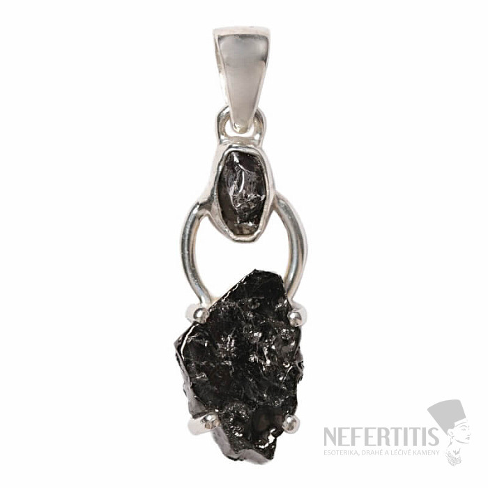 Wunderschöner silberner Designeranhänger mit rohem Hämatit und Campo del Cielo-Meteorit . Ag 925. Sie erwerben direkt den abgebildeten Schmuck.