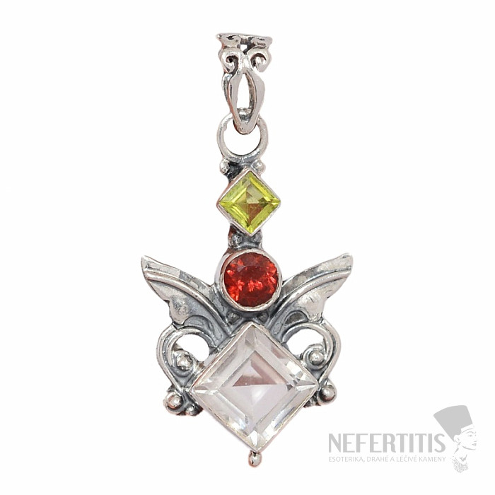Wunderschöner Designer-Anhänger aus Silber mit geschliffenem Kristall, Granat und Olivin. Silber 925. Sie erwerben das abgebildete Schmuckstück.