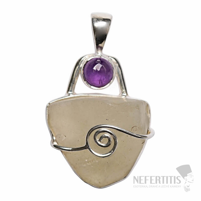 Wunderschöner Designer-Anhänger aus Silber mit einzigartigem libyschem Wüstenglas und Amethyst-Cabochon . Silber 925. Sie erwerben das abgebildete Schmuckstück.