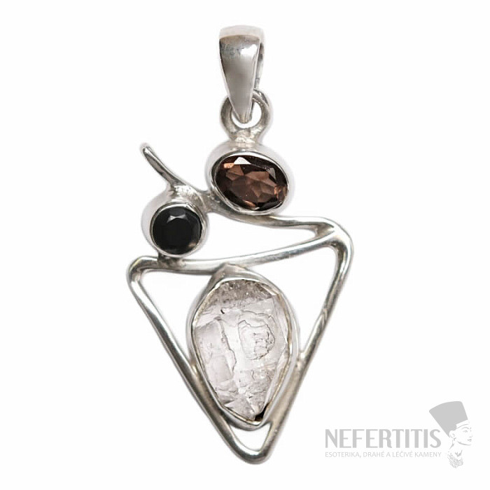Wunderschöner Designer-Anhänger aus Silber mit Herkimer-Diamant, braun geschliffenem und geschliffenem Onyx . Silber 925. Sie erwerben das abgebildete Schmuckstück.