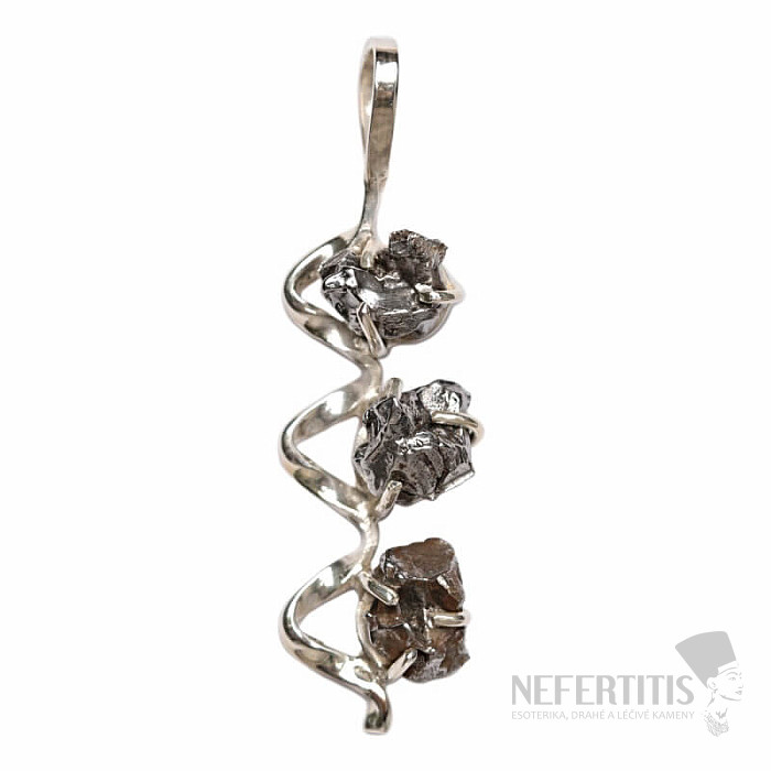 Wunderschöner Designer-Silberanhänger mit seltenem Meteoriten aus Campo del Cielo. Silber 925. Dieser eisenhaltige Meteorit , dessen Glanz und Farbe an Silber erinnern und dessen Alter auf 2700 bis 2200 v. Chr. geschätzt wird, ist ein faszinierendes und unverzichtbares Accessoire für verschiedenste Anlässe. Sie erwerben direkt das abgebildete Schmuckstück.