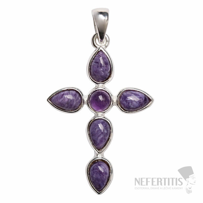 Wunderschöner Designer-Anhänger aus Silber in Kreuzform mit Charoit und Amethyst . Der wunderschöne violette Charoit wird Sie nicht nur mit seinem seidigen Glanz verzaubern, sondern auch mit dem faszinierenden Farbwechsel des Motivs im wechselnden Licht. Silber 925. Sie erwerben das abgebildete Schmuckstück.