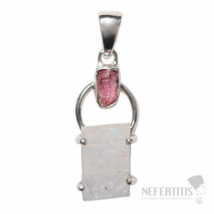 Wunderschöner Designer-Anhänger aus Silber mit rohem Mondstein und rosa Turmalin. 925er Silber. Ein außergewöhnliches Schmuckstück, das alle verzaubern wird und an Ihnen garantiert alle Blicke auf sich zieht. Sie erwerben genau das abgebildete Schmuckstück.