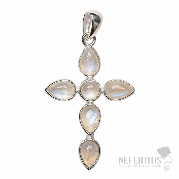 Wunderschöner Designer-Silberanhänger in Kreuzform mit Mondstein-Cabochons. 925er Silber. Ein außergewöhnliches Schmuckstück, das alle Blicke auf sich zieht und garantiert alle Blicke auf sich zieht. Sie erwerben genau das abgebildete Schmuckstück.