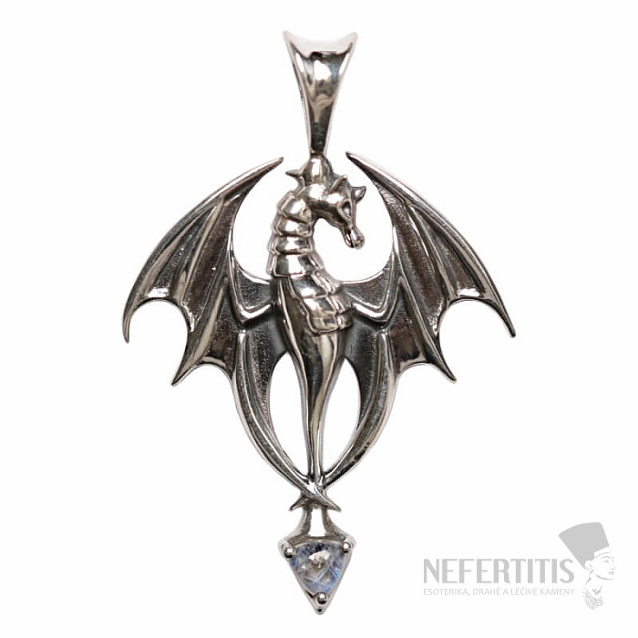 Wunderschöner Designer-Anhänger aus Silber in Drachenform mit einem Mondstein-Cabochon. 925er Silber. Ein außergewöhnliches Schmuckstück, das alle Blicke auf sich zieht und garantiert alle Blicke auf sich zieht. Sie erwerben genau das abgebildete Schmuckstück.