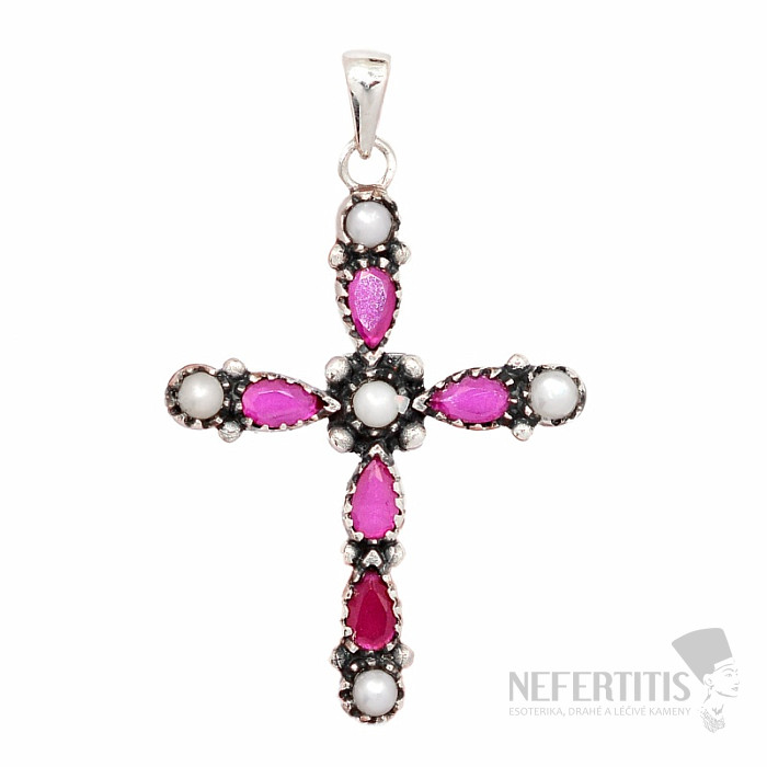 Wunderschöner Designer-Anhänger aus Silber mit Rubinen und Perlen . 925er Silber. Sie erwerben direkt das abgebildete Schmuckstück.