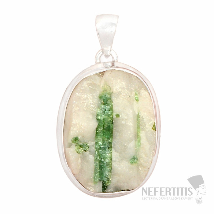 Einzigartiger Anhänger aus grünem Turmalin und Quarz in Silber , der Stress, Wut, Angst und Negativität lindert. Ein bezauberndes Schmuckstück, bei dem das zarte Grün des Verdelit-Turmalins, das Fülle und Wohlstand symbolisiert, mit dem cremeweißen Quarz harmoniert, der die Schönheit des Turmalins hervorhebt. Quarz besitzt die gleichen energetischen Eigenschaften wie Kristall und verstärkt so die Wirkung von Steinen in seiner Umgebung. Er ist ein universeller und kraftvoller Stein mit heilender Energie. Dieser Anhänger besticht nicht nur durch seine Form, sondern vor allem durch seine hochwertige Verarbeitung. Silber 925. Sie erwerben das abgebildete Schmuckstück.