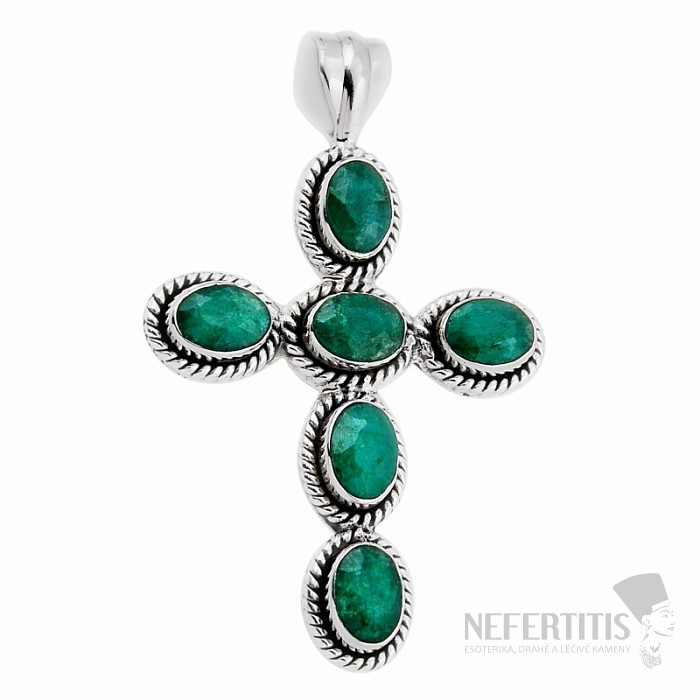 Ein bezaubernder und außergewöhnlicher Silberanhänger in Kreuzform mit geschliffenen indischen Smaragden. Silber 925. Sie erwerben das abgebildete Schmuckstück.
