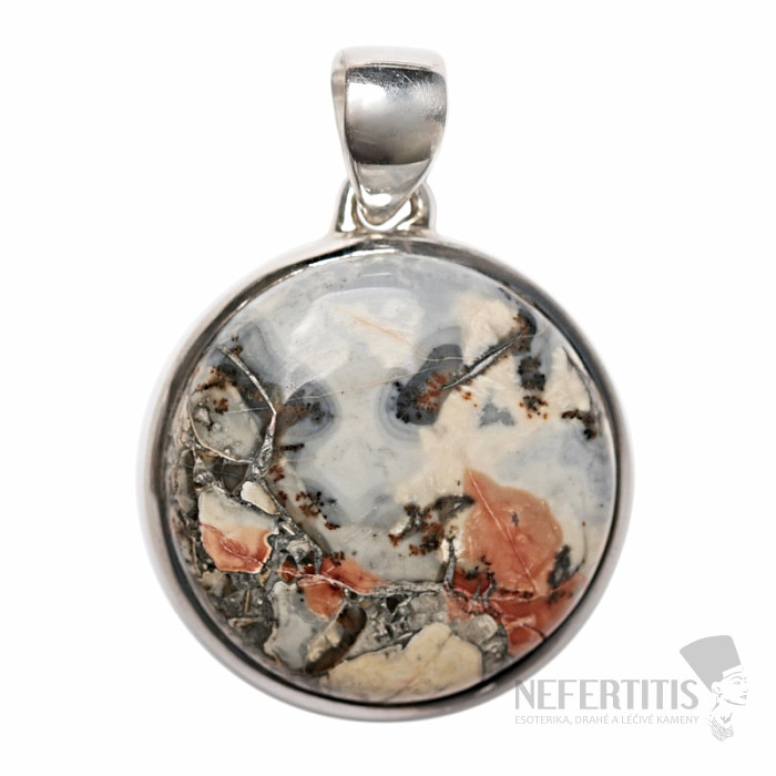 Einzigartiger Silberanhänger mit indonesischem Malingano-Jaspis. Silber 925. Dieser Jaspis stammt aus Indonesien und besticht durch seine attraktive Optik. Er vermittelt ein Gefühl von Freude und guter Laune. Sie erwerben das abgebildete Schmuckstück.