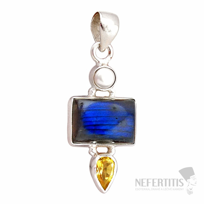 Ein bezaubernder und außergewöhnlicher Silberanhänger mit erstklassigem , natürlichem Labradorit , dessen leuchtend blau-goldene Farbe im Licht magisch schimmert. Der Anhänger ist mit einer weißen Perle und einem geschliffenen Citrin verziert. Silber 925. Lassen Sie sich von der Schönheit und dem faszinierenden Farbenspiel des Labradorits verzaubern. Dank dieses einzigartigen Farbspiels ist dieses Schmuckstück ein absolutes Must-have. Sie erwerben genau das abgebildete Schmuckstück.