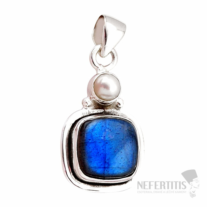 Ein bezaubernder und außergewöhnlicher Silberanhänger mit erstklassigem , natürlichem Labradorit , dessen Farbenspiel in Regenbogenfarben erstrahlt. Das leuchtende Blaugold und die weiße Perle funkeln im Licht auf magische Weise. Silber 925. Lassen Sie sich von der Schönheit und dem Farbenspiel des leuchtenden Blaus des Labradorits verzaubern. Dank dieses faszinierenden Farbenspiels ist dieses Schmuckstück ein echter Blickfang. Sie erwerben genau den abgebildeten Anhänger.