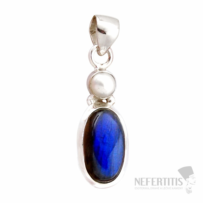 Ein bezaubernder und außergewöhnlicher Silberanhänger mit erstklassigem , natürlichem Labradorit , dessen leuchtend blau-goldene Farbe im Licht magisch schimmert, und einer weißen Perle. Silber 925. Lassen Sie sich von der Schönheit und dem Farbenspiel des leuchtenden Blaus des Labradorits verzaubern. Dank dieses faszinierenden Farbspiels ist dieses Schmuckstück ein absolutes Must-have. Sie erwerben genau das abgebildete Schmuckstück.