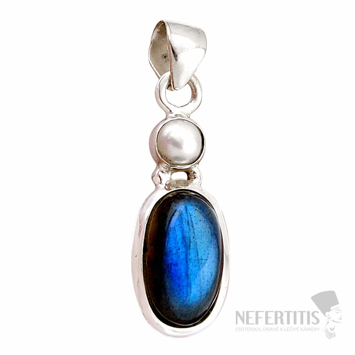 Ein bezaubernder und außergewöhnlicher Silberanhänger mit erstklassigem , natürlichem Labradorit , dessen Farbenspiel in Regenbogenfarben erstrahlt. Das leuchtende Blaugold und die weiße Perle funkeln im Licht auf magische Weise. Silber 925. Lassen Sie sich von der Schönheit und dem Farbenspiel des leuchtenden Blaus des Labradorits verzaubern. Dank dieses faszinierenden Farbenspiels ist dieses Schmuckstück ein echter Blickfang. Sie erwerben genau den abgebildeten Anhänger.