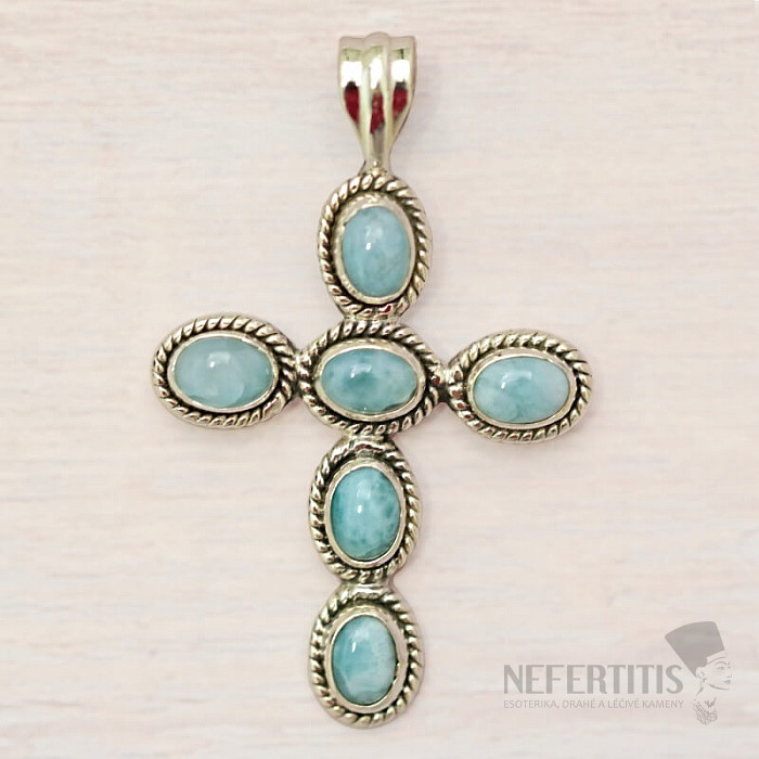 Ein bezaubernder Anhänger aus Silber mit wunderschönen und hochwertigen Cabochons aus seltenem Larimar, der dem Spiel des Sonnenlichts auf der Meeresoberfläche ähnelt. Der Schmuck ist handgefertigt, der Larimar wird sorgfältig mit einer ausgeprägten blauen Farbe ausgewählt. Ag 925. Sie erwerben direkt den abgebildeten Schmuck.