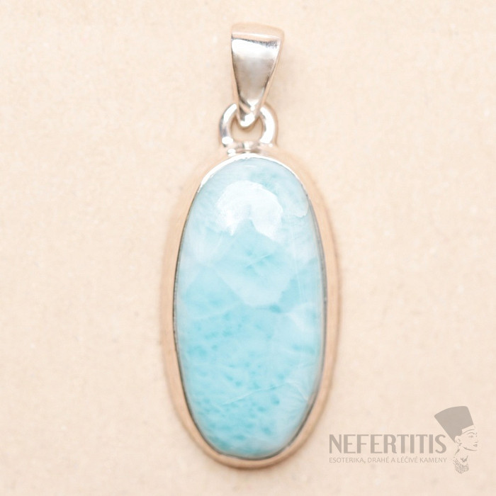 Ein bezaubernder Anhänger aus Silber mit einem wunderschönen und hochwertigen Cabochon aus seltenem Larimar , der an das Spiel der Sonnenstrahlen auf der Meeresoberfläche erinnert. Der Schmuck ist handgefertigt, der Larimarstein wird sorgfältig mit einer ausgeprägten blauen Farbe ausgewählt. Ag 925. Sie erwerben hier direkt den abgebildeten Schmuck.