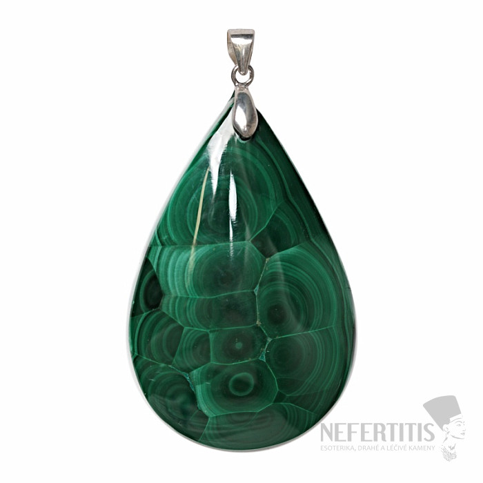 Der Anhänger ist aus 925er Sterlingsilber gefertigt, das für seine Qualität, Festigkeit und seinen natürlichen Silberglanz bekannt ist. Die Kombination aus Silber und dem charakteristischen Malachit ergibt ein Schmuckstück, das luxuriös und natürlich zugleich wirkt.