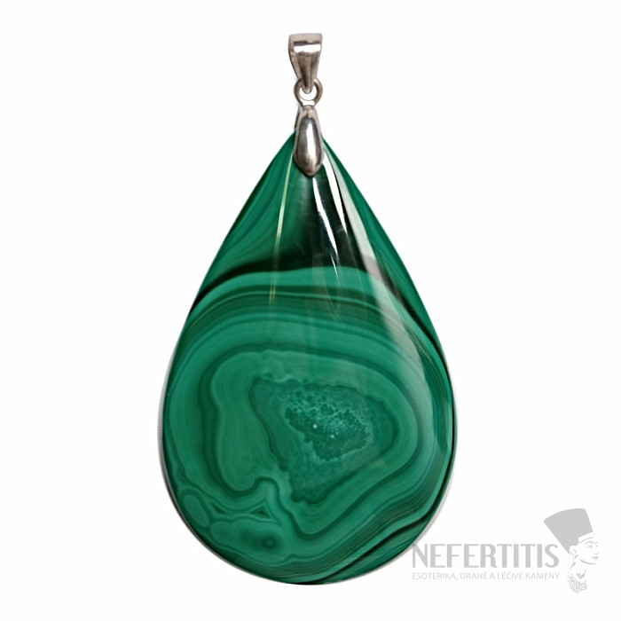 Der Anhänger ist aus 925er Sterlingsilber gefertigt, das für seine Qualität, Festigkeit und seinen natürlichen Silberglanz bekannt ist. Die Kombination aus Silber und dem charakteristischen Malachit ergibt ein Schmuckstück, das luxuriös und natürlich zugleich wirkt.