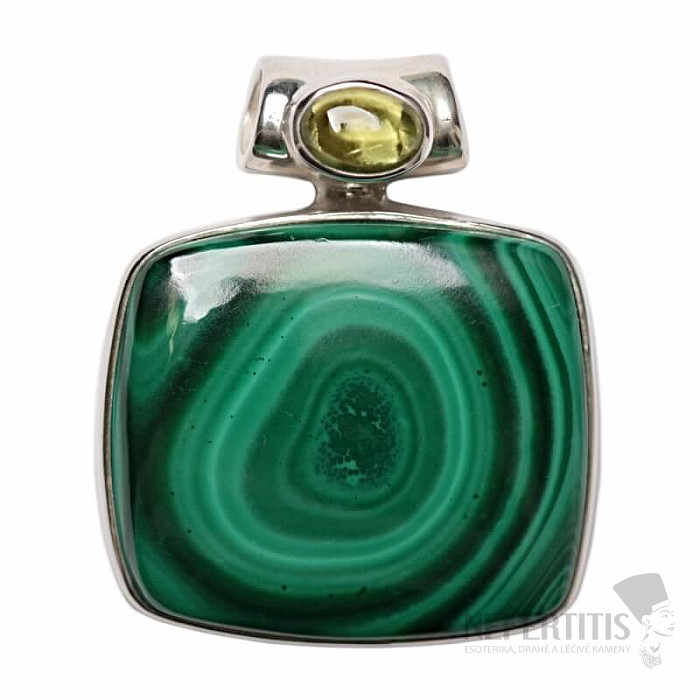 Silberanhänger mit Malachit , der mit seiner tiefgrünen Farbe und seinem einzigartigen Design alle Blicke auf sich zieht. Silber 925. Sie erwerben das abgebildete Schmuckstück.