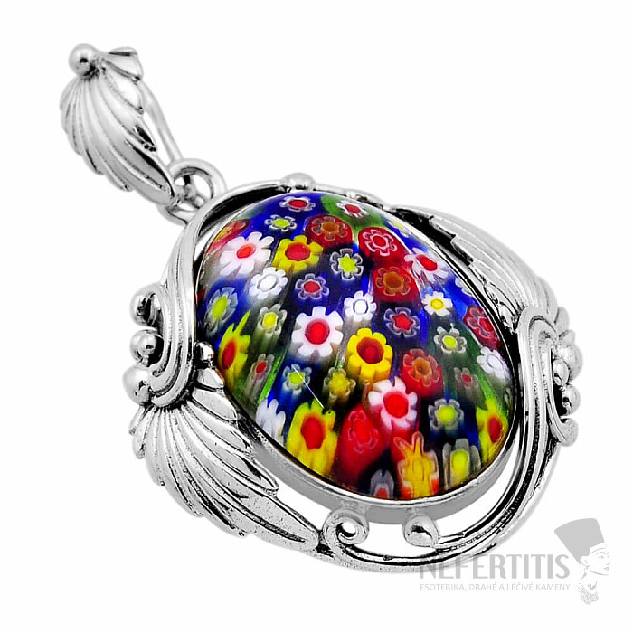 Silberanhänger aus farbigem Muranoglas. Ag 925. Diese Art der Verarbeitung nennt man Millefiori – eine Million Blumen. Jeder Anhänger ist ein Original. Sie kaufen direkt das abgebildete Schmuckstück.