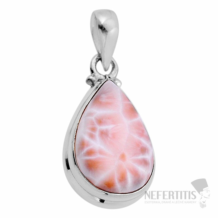 Silberanhänger mit Natrolith. 925er Silber. Natrolith ist ein Stein des persönlichen Wachstums, der mit dem Kronenchakra und dem Stirnchakra in Resonanz steht und so Kommunikation und Konzentration fördert. Sie erwerben den abgebildeten Schmuck.