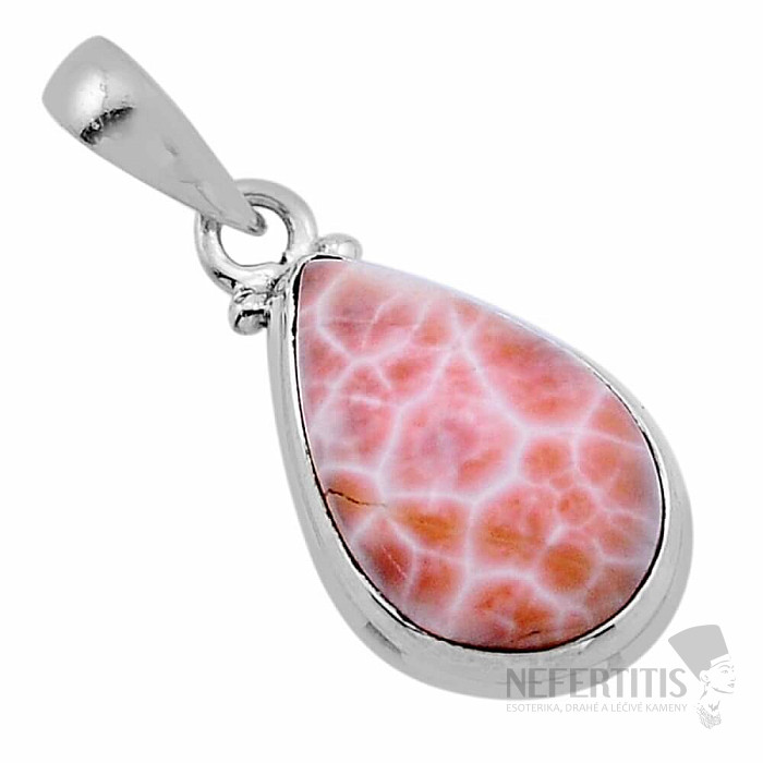 Silberanhänger mit Natrolith. 925er Silber. Natrolith ist ein Stein des persönlichen Wachstums, der mit dem Kronenchakra und dem Stirnchakra in Resonanz steht und so Kommunikation und Konzentration fördert. Sie erwerben den abgebildeten Schmuck.