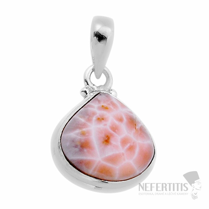 Silberanhänger mit Natrolith. 925er Silber. Natrolith ist ein Stein des persönlichen Wachstums, der mit dem Kronenchakra und dem Stirnchakra in Resonanz steht und so Kommunikation und Konzentration fördert. Sie erwerben den abgebildeten Schmuck.