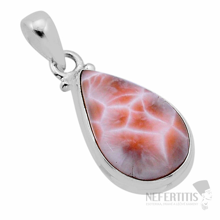 Silberanhänger mit Natrolith. 925er Silber. Natrolith ist ein Stein des persönlichen Wachstums, der mit dem Kronenchakra und dem Stirnchakra in Resonanz steht und so Kommunikation und Konzentration fördert. Sie erwerben den abgebildeten Schmuck.