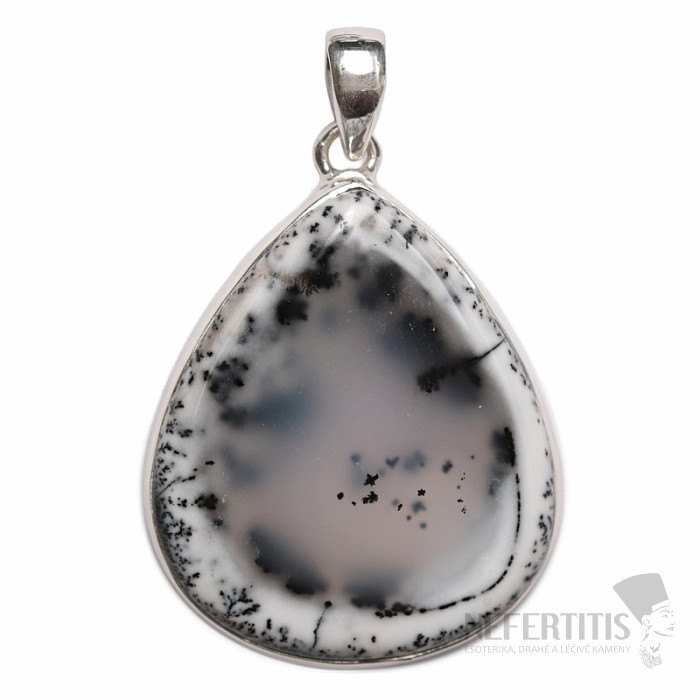 Ein bezaubernder Silberanhänger mit einem dendritischen Opal , der mit seiner weiß-grauen Farbe und dem wunderschönen Muster der Einschlüsse das Bild einer verschneiten Landschaft wie aus der Feder alter chinesischer Landschaftsmaler hervorruft. Ein zartes und filigranes, aber dennoch unverwechselbares und attraktives Schmuckstück. Ein außergewöhnlich schöner Stein, den wir nur selten in unserem Angebot haben. Ag 925. Sie erwerben hier direkt den abgebildeten Schmuck.