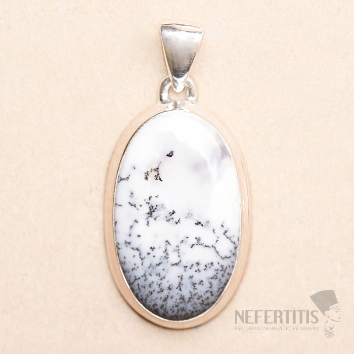 Ein bezaubernder Silberanhänger mit einem dendritischen Opal , der mit seiner weiß-grauen Farbe und dem wunderschönen Muster der Einschlüsse das Bild einer verschneiten Landschaft wie aus der Feder alter chinesischer Landschaftsmaler hervorruft. Ein zartes und filigranes, aber dennoch unverwechselbares und attraktives Schmuckstück. Ein außergewöhnlich schöner Stein, den wir nur selten in unserem Angebot haben. Ag 925. Sie erwerben hier direkt den abgebildeten Schmuck.
