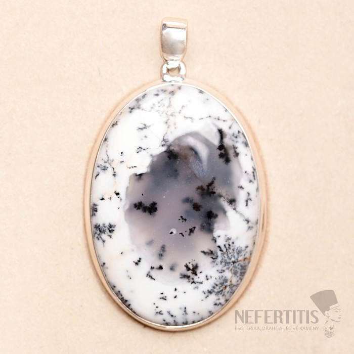 Ein bezaubernder Silberanhänger mit einem dendritischen Opal , der mit seiner weiß-grauen Farbe und dem wunderschönen Muster der Einschlüsse das Bild einer verschneiten Landschaft wie aus der Feder alter chinesischer Landschaftsmaler hervorruft. Ein zartes und filigranes, aber dennoch unverwechselbares und attraktives Schmuckstück. Ein außergewöhnlich schöner Stein, den wir nur selten in unserem Angebot haben. Ag 925. Sie erwerben hier direkt den abgebildeten Schmuck.