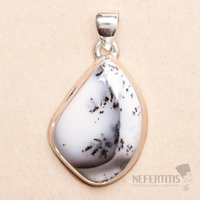 Ein bezaubernder Silberanhänger mit einem dendritischen Opal , der mit seiner weiß-grauen Farbe und dem wunderschönen Muster der Einschlüsse das Bild einer verschneiten Landschaft wie aus der Feder alter chinesischer Landschaftsmaler hervorruft. Ein zartes und filigranes, aber dennoch unverwechselbares und attraktives Schmuckstück. Ein außergewöhnlich schöner Stein, den wir nur selten in unserem Angebot haben. Ag 925. Sie erwerben hier direkt den abgebildeten Schmuck.