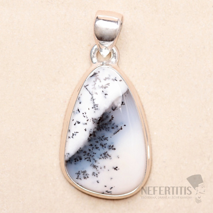 Ein bezaubernder Silberanhänger mit einem dendritischen Opal , der mit seiner weiß-grauen Farbe und dem wunderschönen Muster der Einschlüsse das Bild einer verschneiten Landschaft wie aus der Feder alter chinesischer Landschaftsmaler hervorruft. Ein zartes und filigranes, aber dennoch unverwechselbares und attraktives Schmuckstück. Ein außergewöhnlich schöner Stein, den wir nur selten in unserem Angebot haben. Ag 925. Sie erwerben hier direkt den abgebildeten Schmuck.