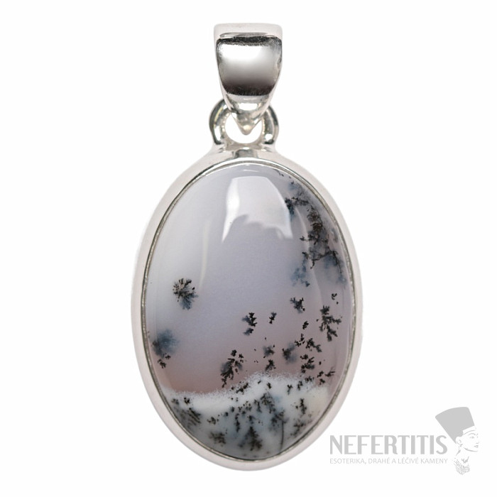 Ein bezaubernder Silberanhänger mit einem dendritischen Opal , der mit seiner weiß-grauen Farbe und dem wunderschönen Muster der Einschlüsse das Bild einer verschneiten Landschaft wie aus der Feder alter chinesischer Landschaftsmaler hervorruft. Ein zartes und filigranes, aber dennoch unverwechselbares und attraktives Schmuckstück. Ein außergewöhnlich schöner Stein, den wir nur selten in unserem Angebot haben. Ag 925. Sie erwerben hier direkt den abgebildeten Schmuck.