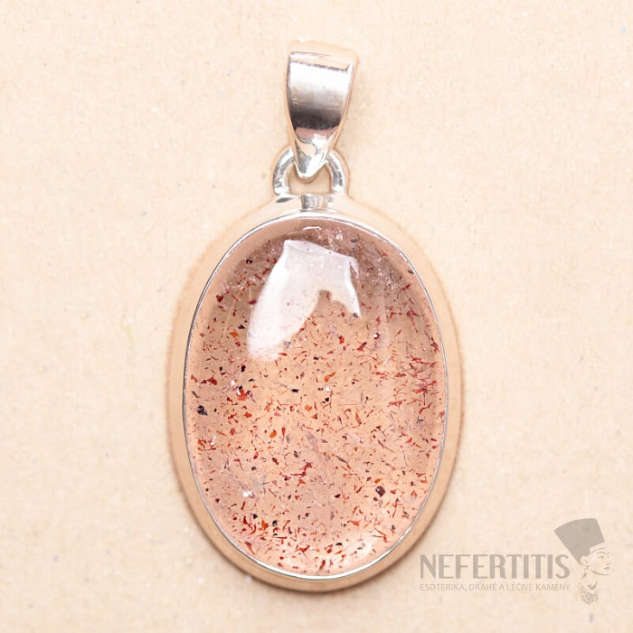 Silberanhänger mit einem seltenen Kristall von der Fundstätte Orire . Dieser Halbedelstein wird in der Ortschaft Orire in Nigeria abgebaut. Orire kann frei mit „Viel Glück“ übersetzt werden, weshalb dieser Stein auch den Spitznamen „Glückskristall“ trägt. Es handelt sich um eine seltene Kombination aus Kristall mit Einschlüssen von Hämatit und Lepidokrokit . Ag 925. Sie erwerben hier direkt den abgebildeten Schmuck.